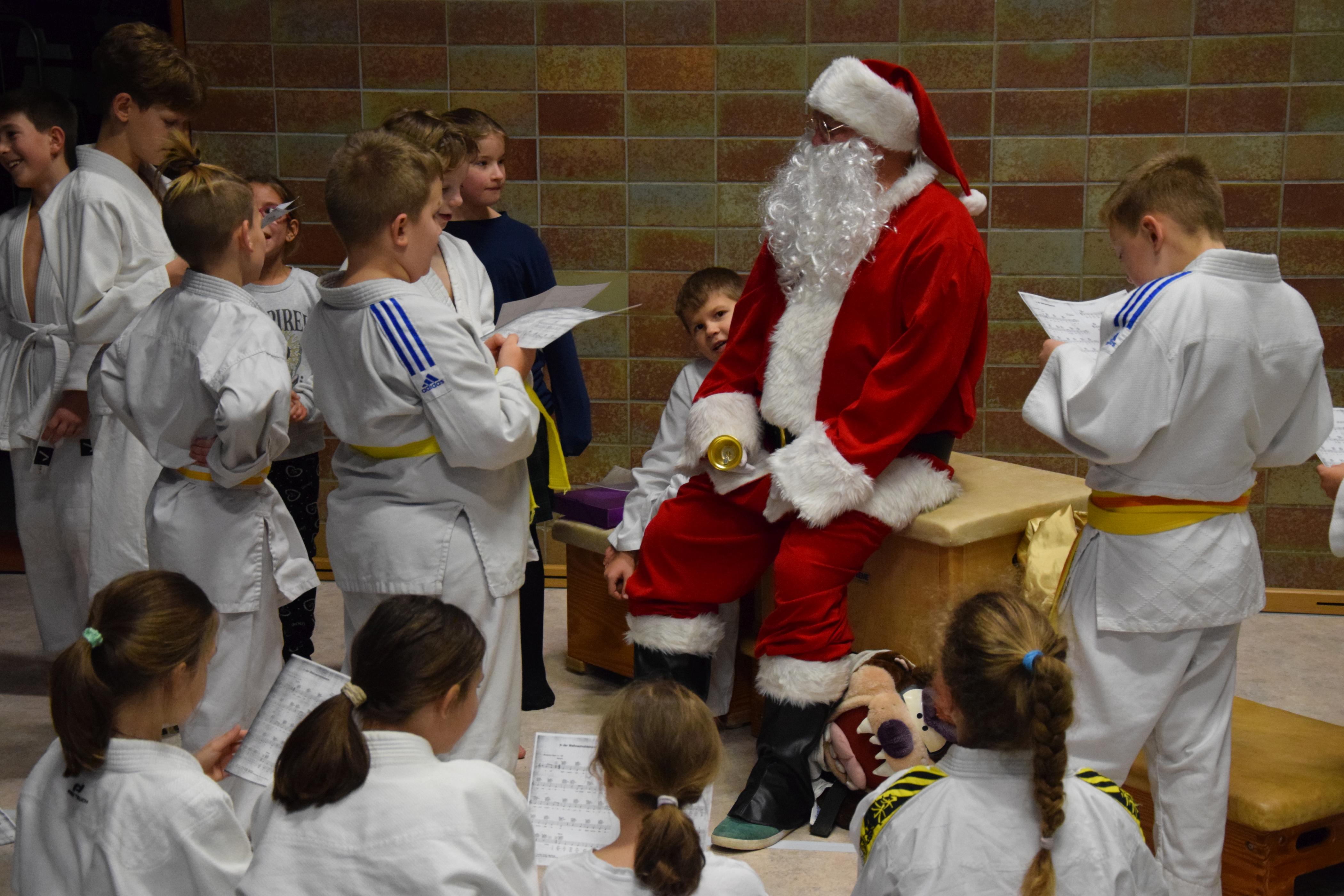 Zum Abschluss wurde es festlich: Gemeinsam sangen wir Weihnachtslieder, bevor der Nikolaus persönlich vorbeischaute und jedem Kind eine Weihnachtstüte überreichte. Die Augen unserer jungen Judoka leuchteten mindestens so sehr wie der Weihnachtsbaum daneben.